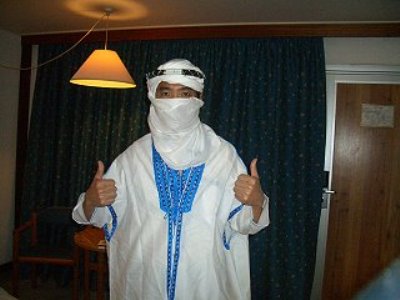 由於長像不怎麼樣, 沒你們帥, 又不能不po張近照來活潑一下場面, 只好來個阿拉伯的勞倫斯吧! 半掩面一下ㄟ, 就少一把吉他!(我還真會彈兩首呢!)